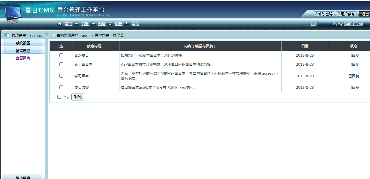 0040-1CMS留言系统留言本ASP留言源码修改固定隐藏留言管理IP记录