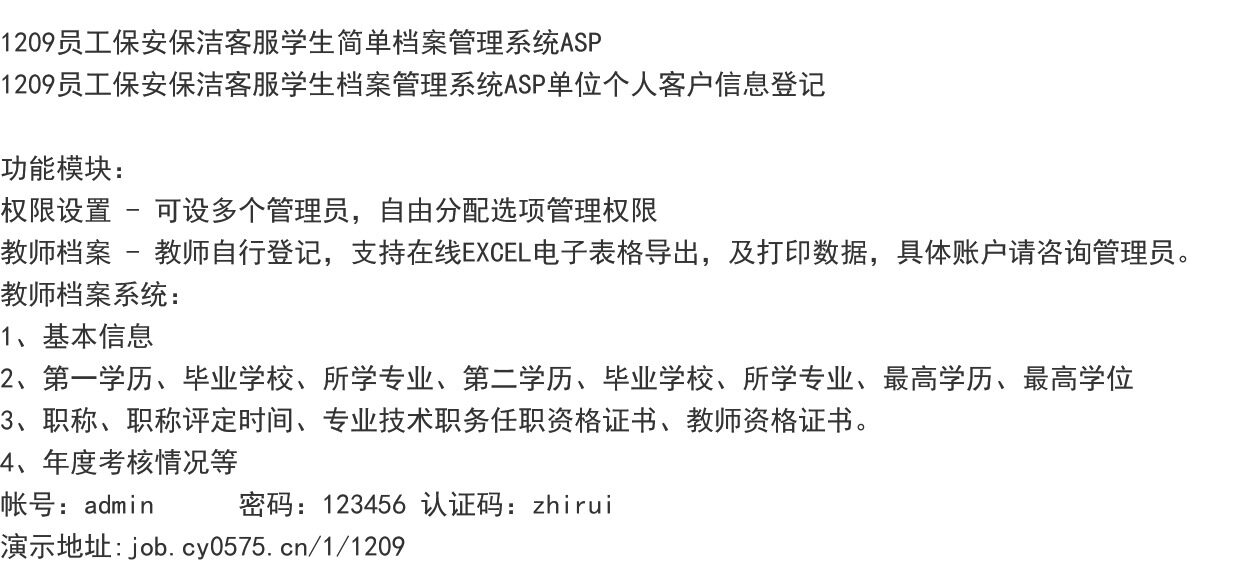 1209员工保安保洁客服学生档案管理系统ASP单位个人客户信息登记